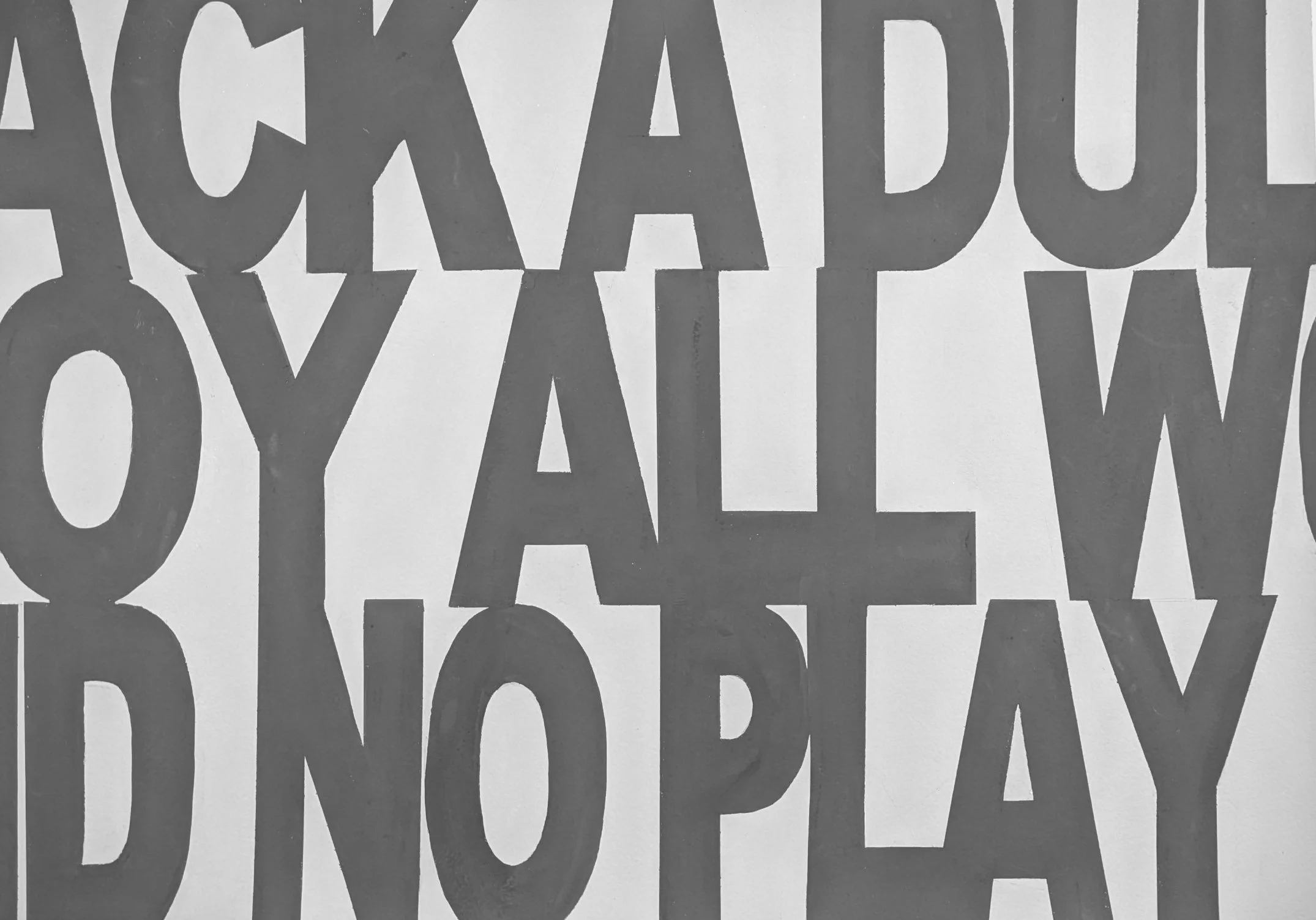Over 60 plus years of painting words and phrases have occasionally appeared in my work, usually in combination with images. Now the images are gone and the language elements remain. Project One Project Two Project Three Project Four Project Five Project Six
